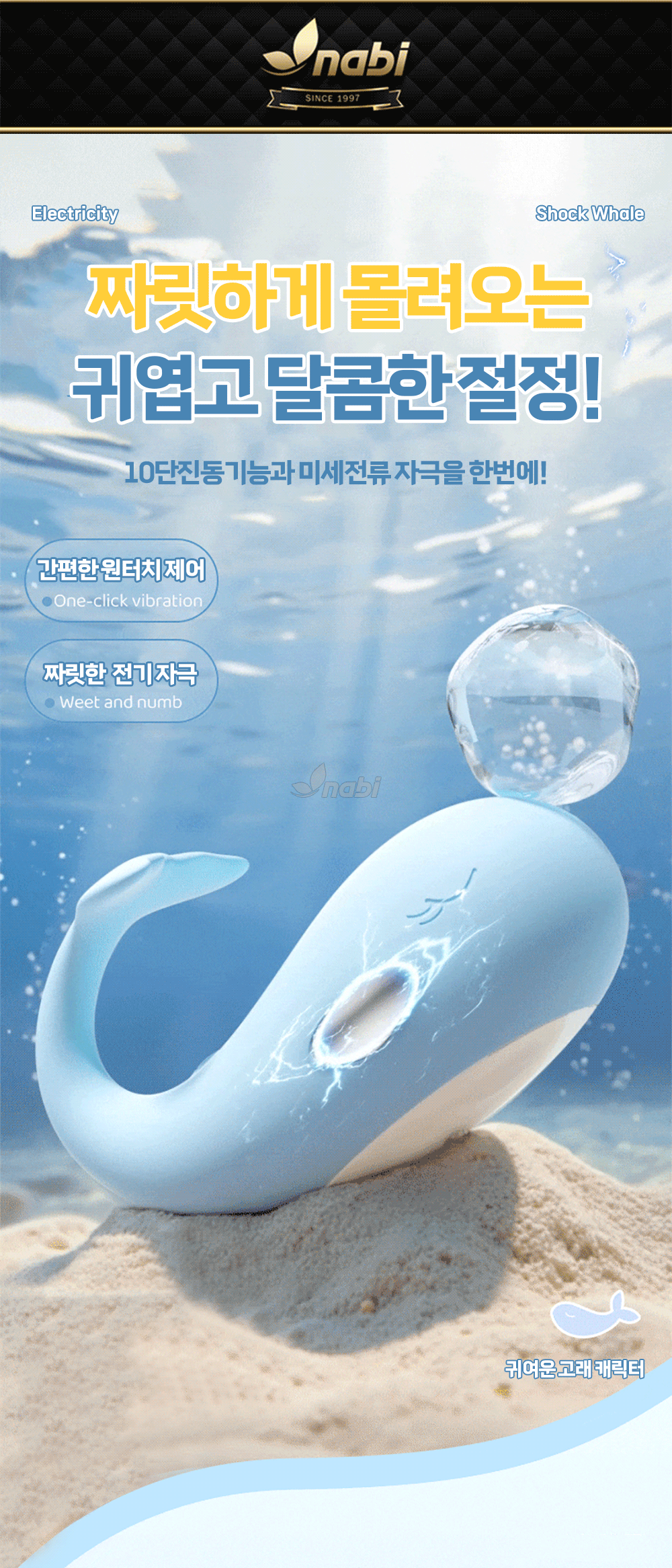 쇼크 웨일 (10단 진동/ 전류자극)(색상랜덤)